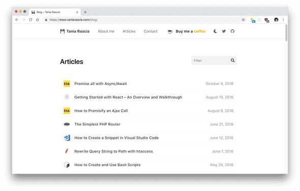 Back in July 2017, I posted about all the redesigns of taniarascia.com that happened up to version 2.0. I made many small, incremental changes to the design over the course of two years, because I'm obsessed with tweaking my site's design and always trying to make it better. After making version 2.0, I decided to stop making tiny tweaks to the site and do full-blown redesigns instead. This way I can focus on writing more and still have fun designing every now and then.
